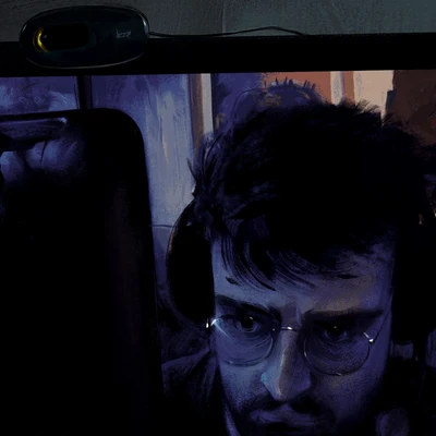 He's just cutting the crusts off his jelly sandwich. This painting is something of a style study of Phil Hale's work since it so closely resembles his.